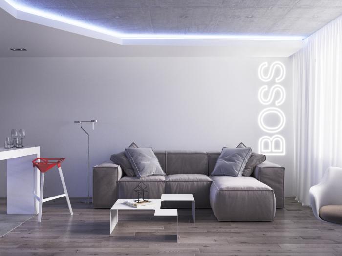 - Визуальное разделение пространства. Свет помогает отделить кухонную зону от гостиной‚ зону отдыха от рабочей области‚ что особенно важно в квартирах-студиях и открытых планировках.