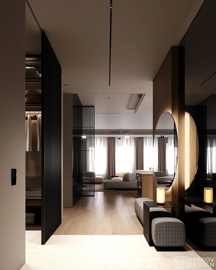 - Обращайте внимание на расположение светильников. Проходите вокруг и смотрите, как меняется восприятие пространства при разном освещении.