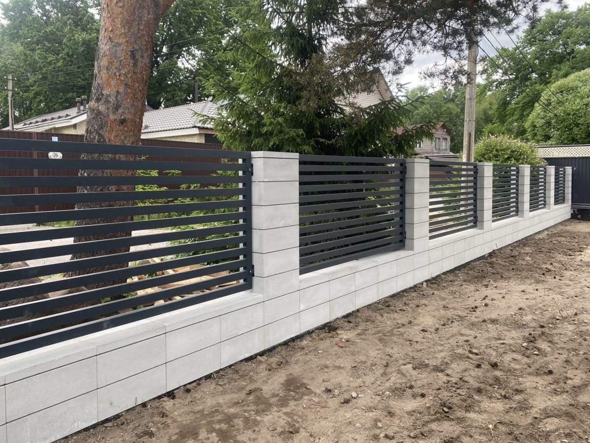 - Бетонные заборы — могут быть сплошными и с декоративными элементами․